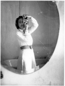 Anita Conti, autoportrait dans le miroir d’une salle de bain à l’escale d’un port méditerranéen 1941-1945